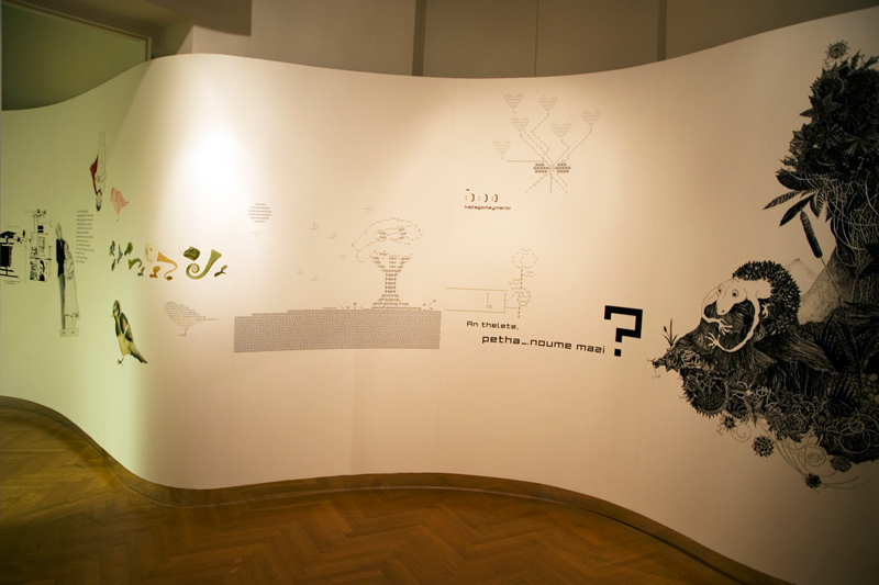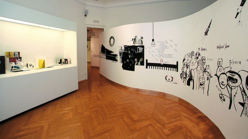 “Tο Εργαστήριο επιμένει και συγκεντρώνει ό, τι έχει: ιδέες, λέξεις, εικόνες, σελίδες και βιβλία. Δάσκαλοι, φοιτητές και υπότροφοι, σχεδιάζουν μαζί ένα μεγάλων διαστάσεων βιβλίο-εγκατάσταση, που ξεδιπλώνεται στις αίθουσες του Μεγάρου Σταθάτου, οι σελίδες του οποίου δημιουργούν ένα περιβάλλον και σχηματίζουν μια διαδρομή, όπου ο επισκέπτης καλείται να περιηγηθει. Η εκθέση περιλαμβάνει ειδικό αφιέρωμα στην ιστορία του Εργαστηρίου: εκτίθενται οι «Δέκα Λευκαί Λήκυθοι» (1956), το τελειότερο βιβλίο της ελληνικής καλλιτεχνικής τυπογραφίας, καρπός πολυετούς και επίπονης δουλειάς από τον Γιάννη Κεφαλληνό, Ιδρυτή του Εργαστηρίου, και τους φοιτητές του. Παράλληλα, οι επισκέπτες θα έχουν την ευκαιρία να δουν από κοντά τις νεανικές τυπογραφικές απόπειρες γνωστών μετέπειτα καλλιτεχνών, όπως της Βάσως Κατράκη, του Χρόνη Μπότσογλου, του Γιάννη Μπουτέα, της Νέλλας Γκόλαντα, της Άριας Κομιανού, και πολλών άλλων. Τα εκθέματα περιλαμβάνουν μια επιλογή από τα καλλιτεχνικά βιβλία των φοιτητών του Εργαστηρίου, αποτέλεσμα έρευνας και πειραματισμών της τελευταίας δεκαετίας. Ευφάνταστα και απρόβλεπτα, τα βιβλία παντρεύουν εικόνα και κείμενο με παραδοσιακές και σύγχρονες μεθόδους στοιχειοθεσίας και εκτύπωσης και είναι αυτά που ενέπνευσαν την εγκατάσταση.”
