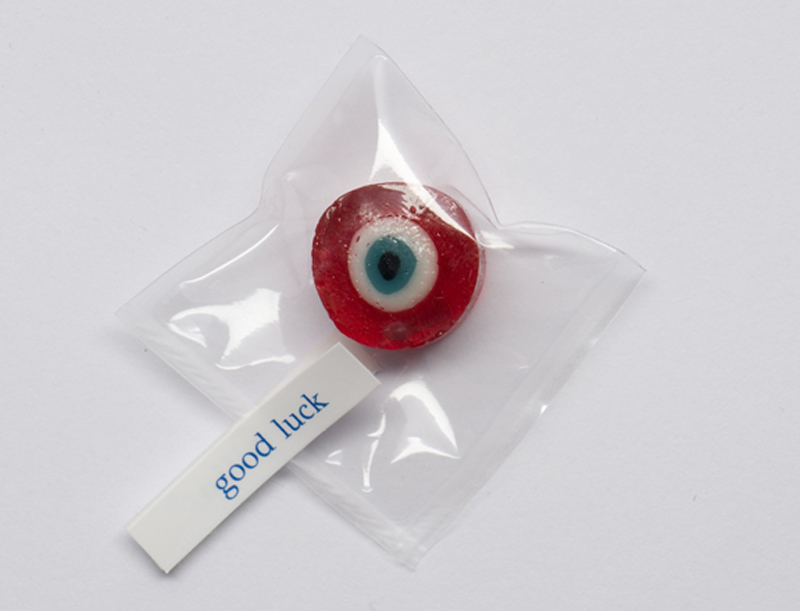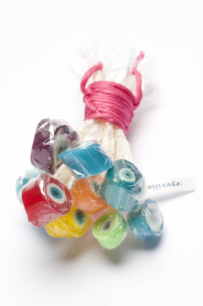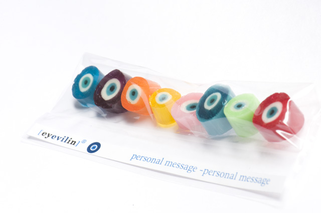 Το eyevilin είναι μια καραμέλα που έχει σχεδιαστεί από τη Χαρά Μαραντίδου με πηγή έμπνευσης τα ματάκια-φυλαχτά που προστατεύουν από το κακό μάτι (evil eye). Στην πρώτη της εφαρμογή η καραμέλα αποτέλεσε μέρος της εικαστικής εγκατάστασης placebo της Χαράς Μαραντίδου που παρουσιάστηκε στα εγκαίνια του φαρμακείου Ε. Μορφοπούλου μαζί με έργα άλλων καλλιτεχνών. Η καραμέλα είχε τοποθετηθεί σε συσκευασίες blister και συνοδευόταν από οδηγίες χρήσης ανάλογες του έντυπου υλικού που συνοδεύει ένα φάρμακο. Η Μαραντίδου τοποθέτησε σε πάγκο προβολής τα καραμελάκια και τα παρουσίαζε ως το νέο φάρμακο για το μάτιασμα μοιράζοντας δωρεάν συσκευασίες του 1 blister . Οι εντυπώσεις από τον κόσμο ήταν ιδιαίτερα θετικές, είτε το αντιλαμβάνονταν σαν μια χιουμοριστική ιδέα για τις προλήψεις και το μάτιασμα, είτε το πιστεύαν ελπίζοντας στις ιδιότητές του. Οι άνθρωποι που πιστεύουν σοβαρά στο κακό μάτι το είδαν σαν μία καταπληκτική λύση στο πρόβλημά τους και ήθελαν να σιγουρευτούν ότι όντως πιάνει γιατί, όπως κάποιοι αναφέρανε, τα ματόχαντρα που φοράνε στο λαιμό ή σαν βραχιόλια δεν κάνουν τίποτα!