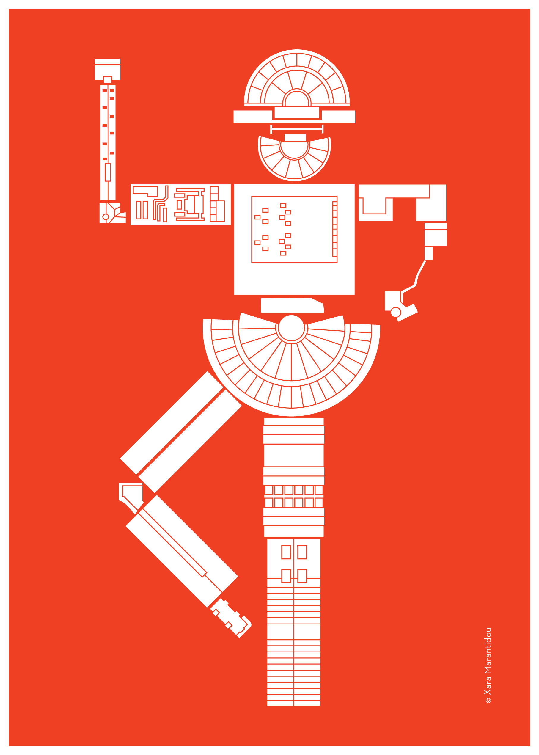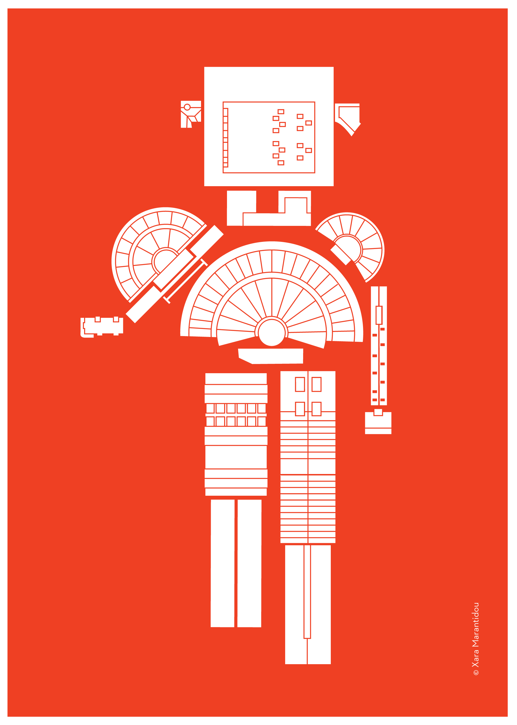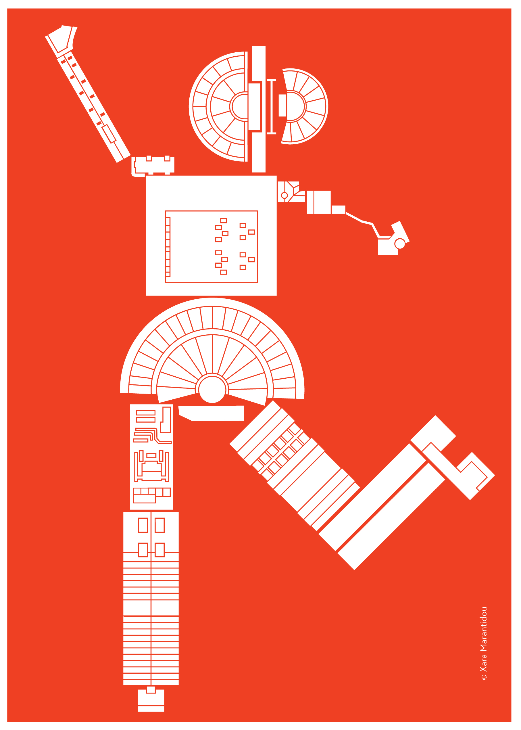 Προσπαθώντας να ορίσω μια εικαστική ταυτότητα για το Φεστιβάλ Αθηνών & Επιδαύρου, αρχικά επικεντρώθηκα στο κοινό του, τη μάζα ανθρώπων που πηγαίνουν στις εκδηλώσεις του και κινούνται μέσα στην πόλη με σημεία αναφοράς τους χώρους που φιλοξενούν το Φεστιβάλ . Με το Google Earth ξεκίνησα κάνοντας μια καταγραφή, κατοπτική, όλων των χώρων. Με γοήτευε η ιδέα ότι το Φεστιβάλ διαχέεται μέσα και έξω από την πόλη, σε εξωτερικούς και εσωτερικούς χώρους και τη μεταμορφώνει. Ήταν σαν να έχω ένα παιχνίδι lego όπου με πάνω από 10 διαφορετικά κομμάτια μπορώ να φτιάξω ξανά και ξανά την πόλη, μόνο που αυτή τη φορά η πόλη θύμιζε φιγούρες βγαλμένες από παραστάσεις χορού, θεάτρου, όπερας. Οι δυνατότητες ήταν πάρα πολλές. Οι περισσότερες ανθρωπόμορφες, άλλες θύμιζαν πολεμιστές, άλλες χορευτές, υπάρχει και μία ψηλή όρνιθα. Τα θέατρα έγιναν κεφάλια, φούστες, ασπίδες, θώρακες, φτερά κλπ. Οι κατόψεις των στεγάστρων της Πειραιώς και του ΟΛΠ ήταν συνήθως τα πόδια, οι λαιμοί και οι κορμοί. Ενώ τα μικρότερα κτίρια με τα πιο ιδιαίτερα σχήματα έδωσαν ψυχή στις φιγούρες. Το αλογάκι είναι η πιο ολοκληρωμένη φιγούρα από όλες, έχει τη σοβαρότητα και το συμβολισμό ενός Δούρειου Ίππου αλλά και την ευθυμία και αισιοδοξία ενός τροχήλατου παιδικού παιχνιδιού. Συμπυκνώνει όλα όσα φαντάζομαι ότι είναι το Ελληνικό Φεστιβάλ.