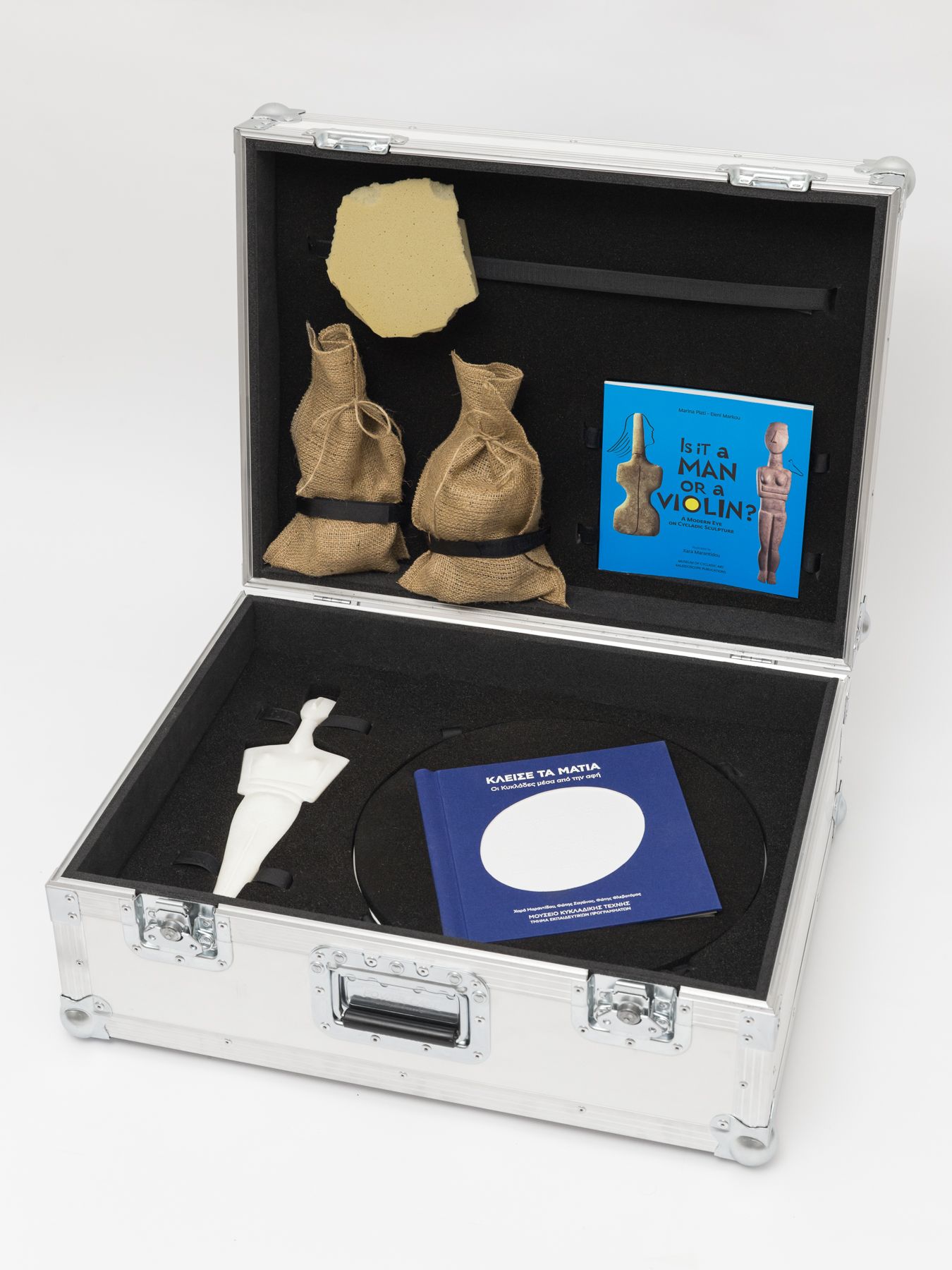 The multisensory museum kit was designed for people with visual impairments and primarily the School for the Blind in Athens. The concept was that the educational material would act as the basis for a series of multi-sensory activities and information about the Ancient Cycladic Civilization in general and more specifically the marble figurines with direct and indirect references for the Cyclades and their history.