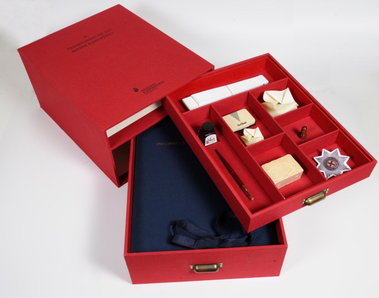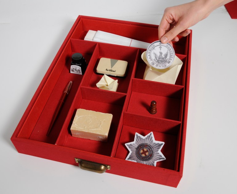 Το ίδιο το κουτί, μέσα στο οποίο περιέχεται το υλικό, παραπέμπει στα κουτιά που χρησιμοποιούν οι αρχειονόμοι σε ιστορικά αρχεία, για να ταξινομήσουν και να διαφυλάξουν το υλικό τους. Μέσα στα συρτάρια του υπάρχουν καρτέλες πληροφοριών, εικόνες αντικειμένων ή έγγραφα, καρτέλες δραστηριοτήτων και αντίγραφα αντικειμένων της Συλλογής του Μουσείου. Όλα τα παραπάνω είναι ομαδοποιημένα σε τρεις κατηγορίες. Οι κατηγορίες αυτές είναι οι άξονες γύρω από τους οποίους έχει οργανωθεί το υλικό.